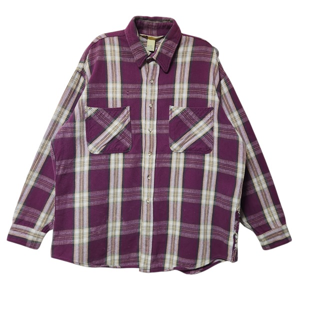 90s ST JOHN'S BAY セントジョンズベイ ネルシャツ ヘビネル パープル系 USA製 XL