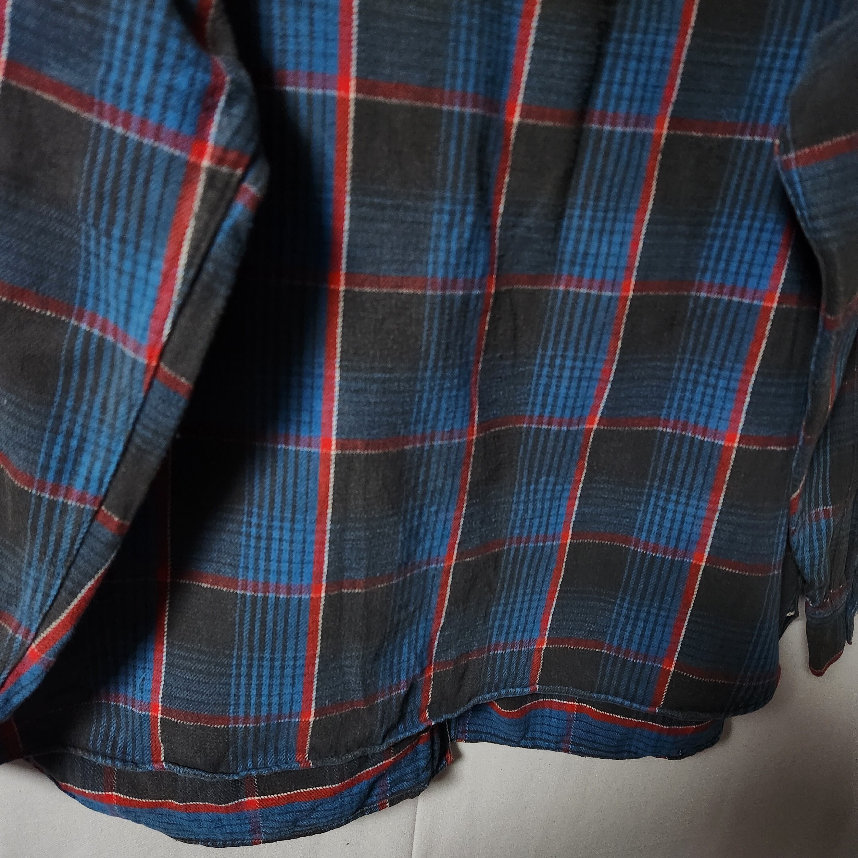 ブルー、ブラック、レッドの好配色のネルシャツ☆