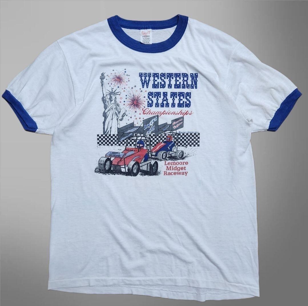 70s STEDMAN モーターカルチャー ヴィンテージ Tシャツ リンガーT USA製 白 L