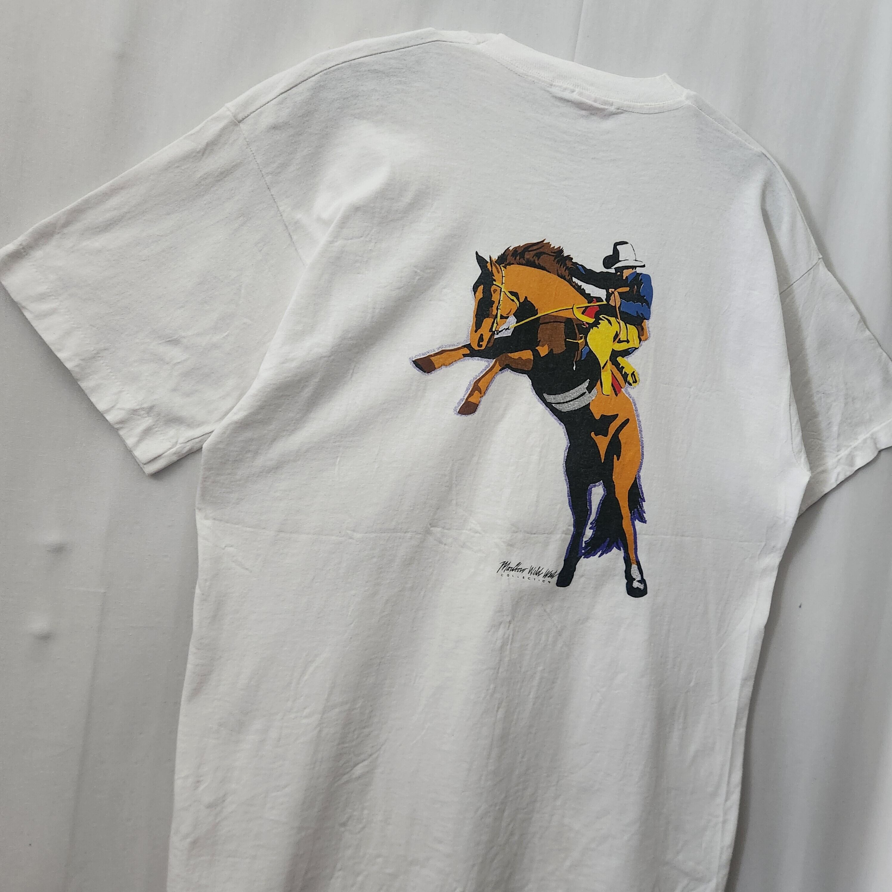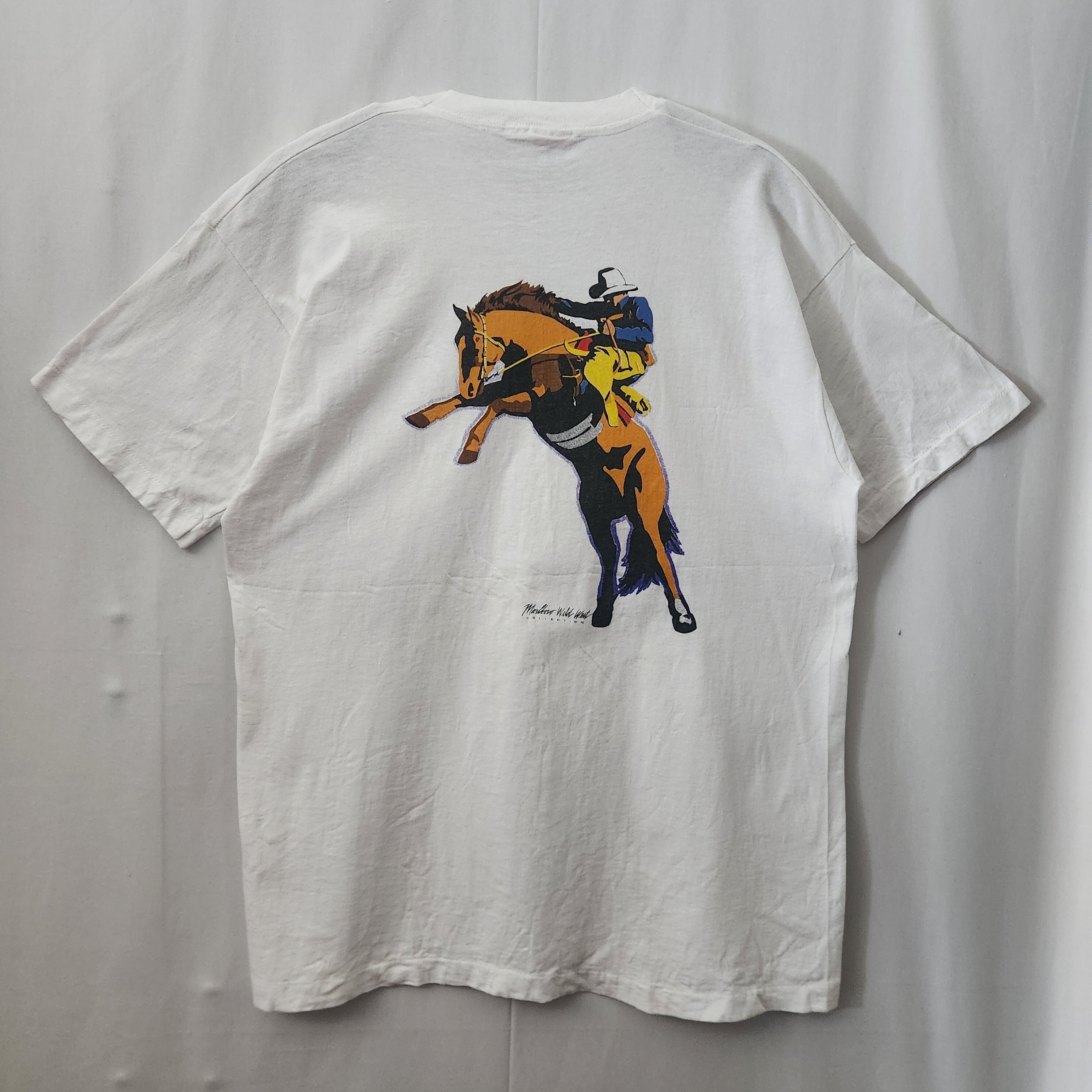 レア★ 90s Marlboro Wild West ロデオ COWBOY Tシャツ USA製 白 XL相当