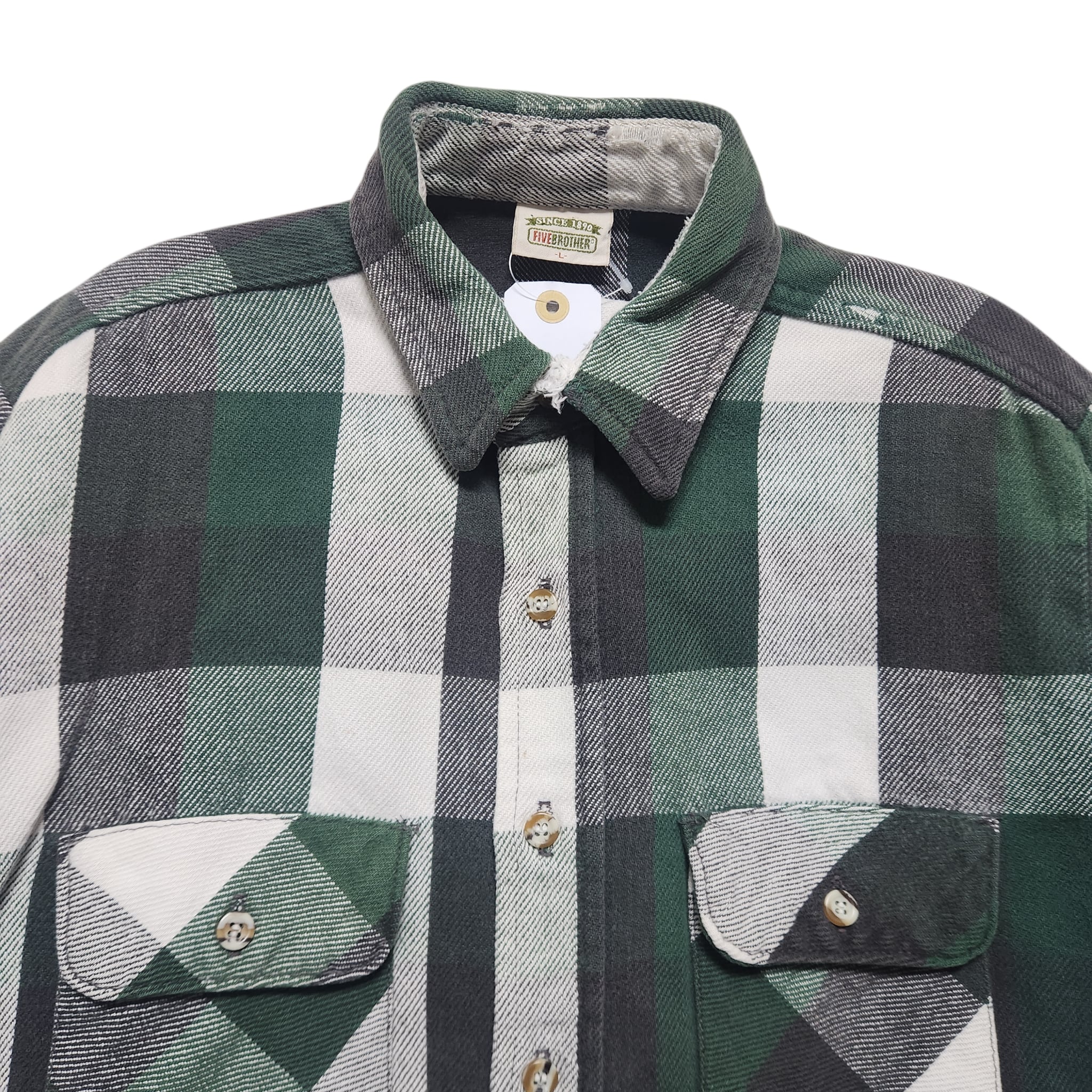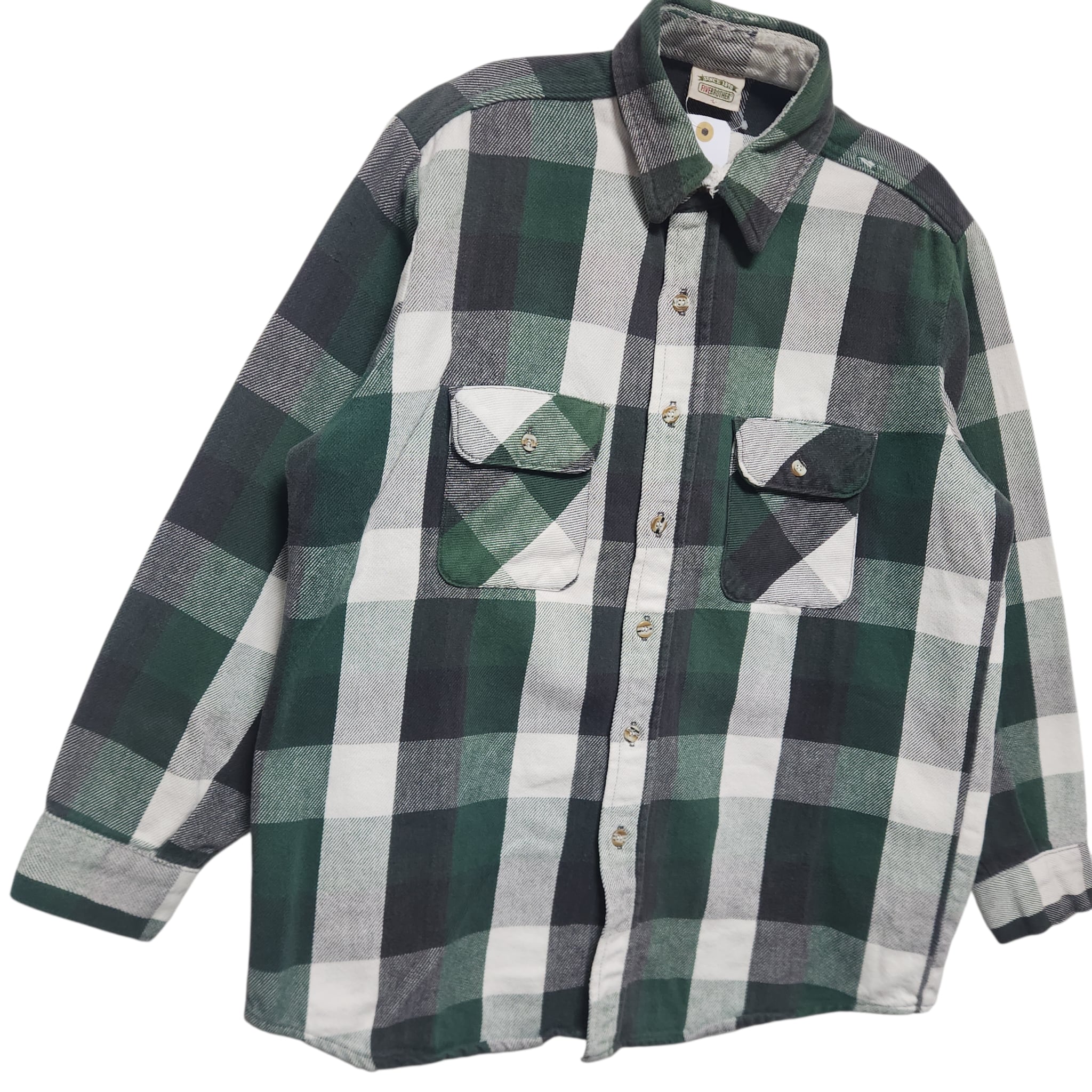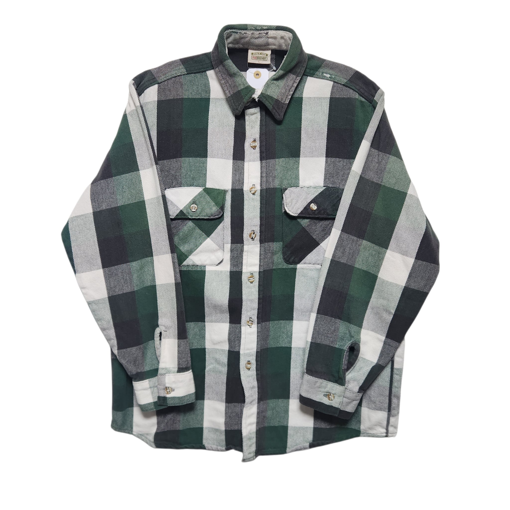 90s FIVE BROTHER ファイブブラザー ヘビネル ネルシャツ 緑 黒 チェック L