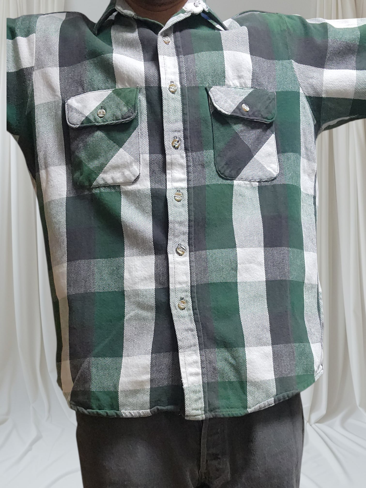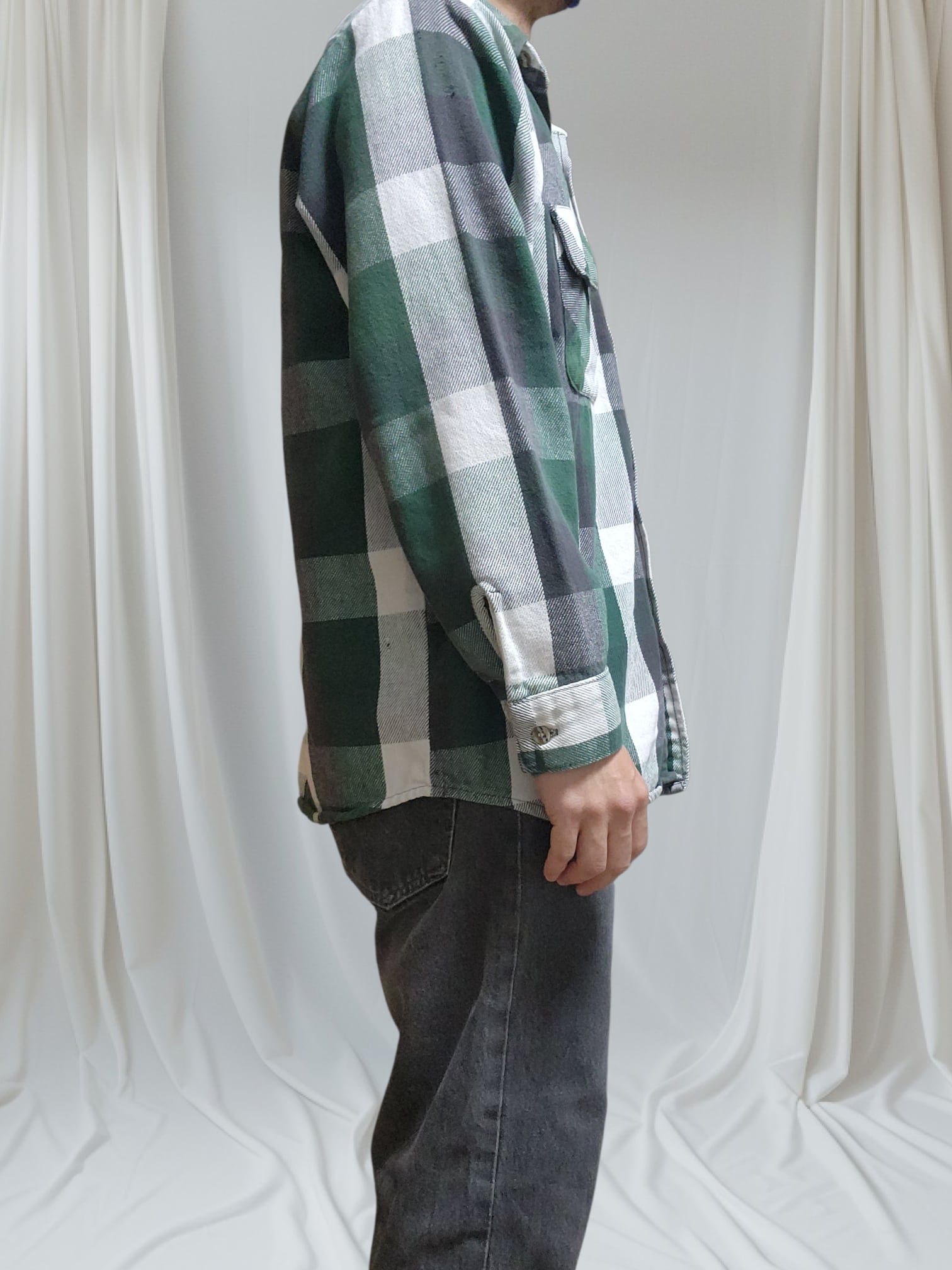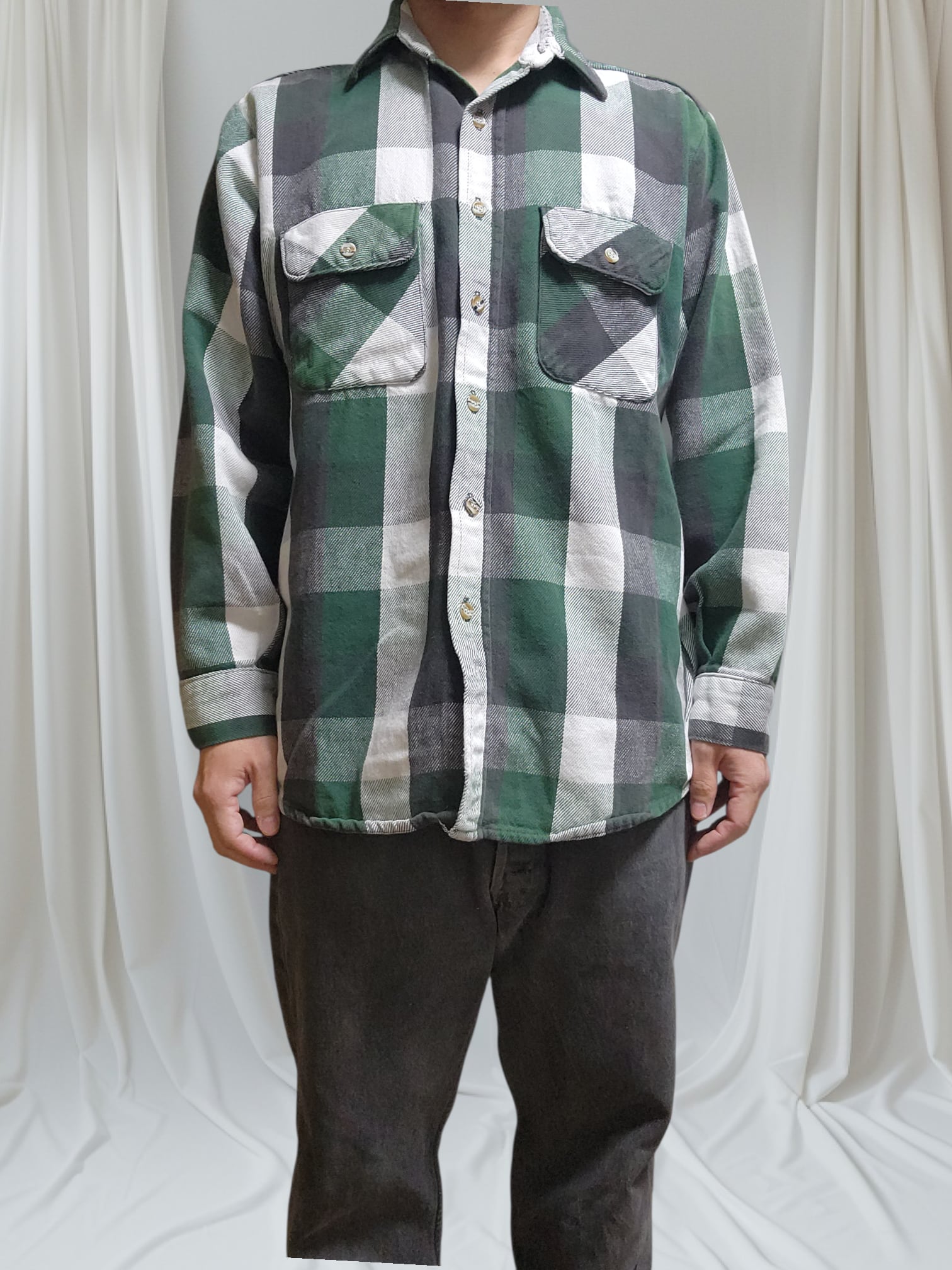 90s FIVE BROTHER ファイブブラザー ヘビネル ネルシャツ 緑 黒 チェック L