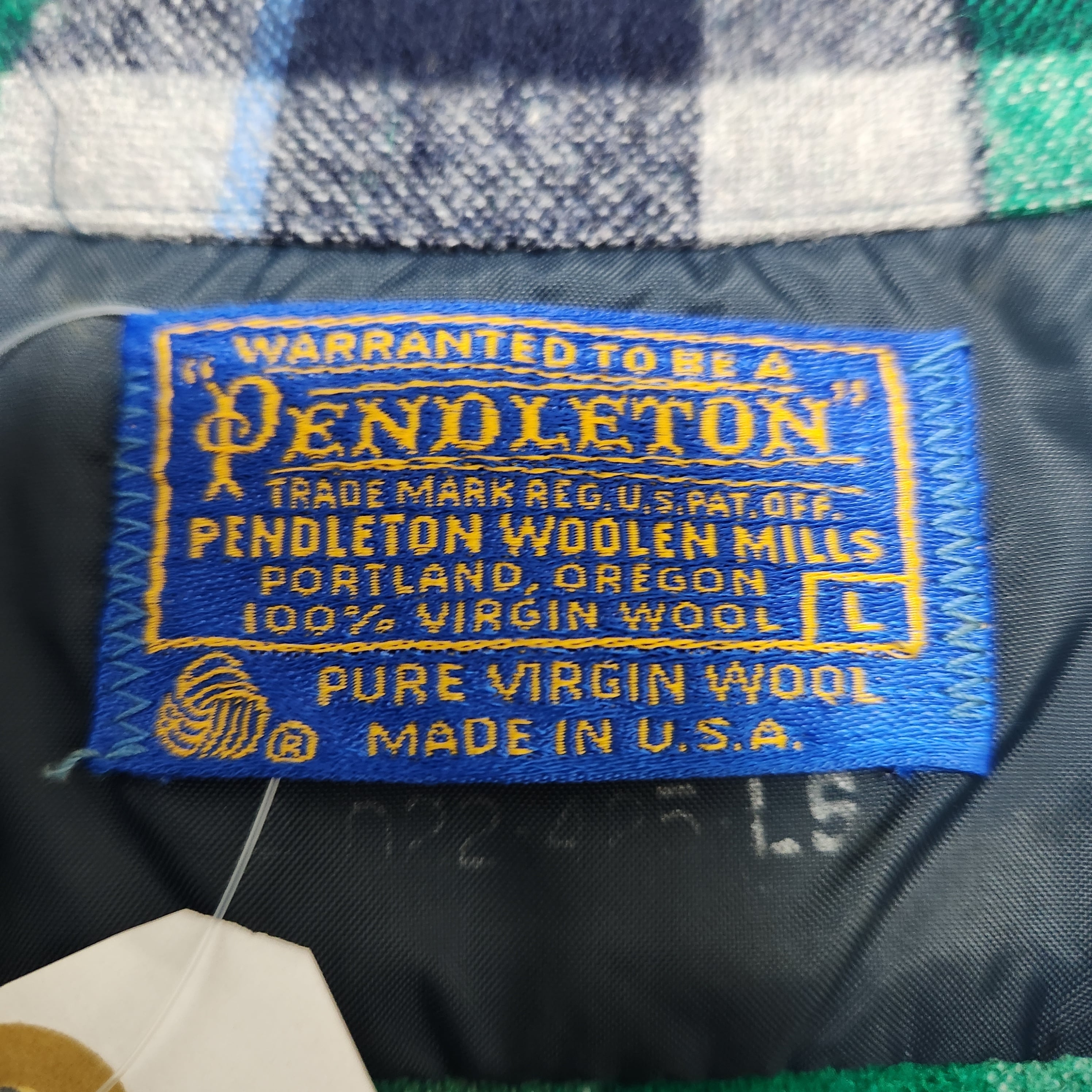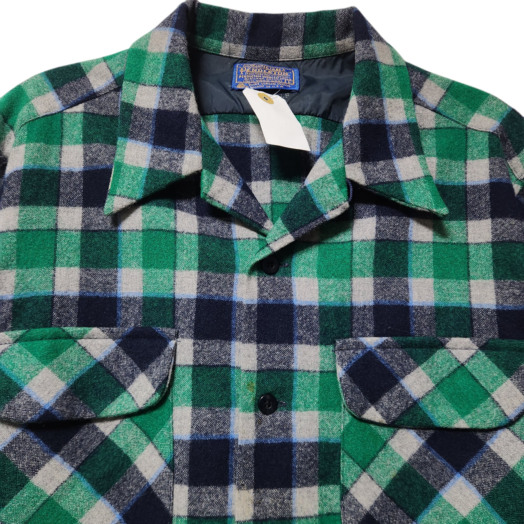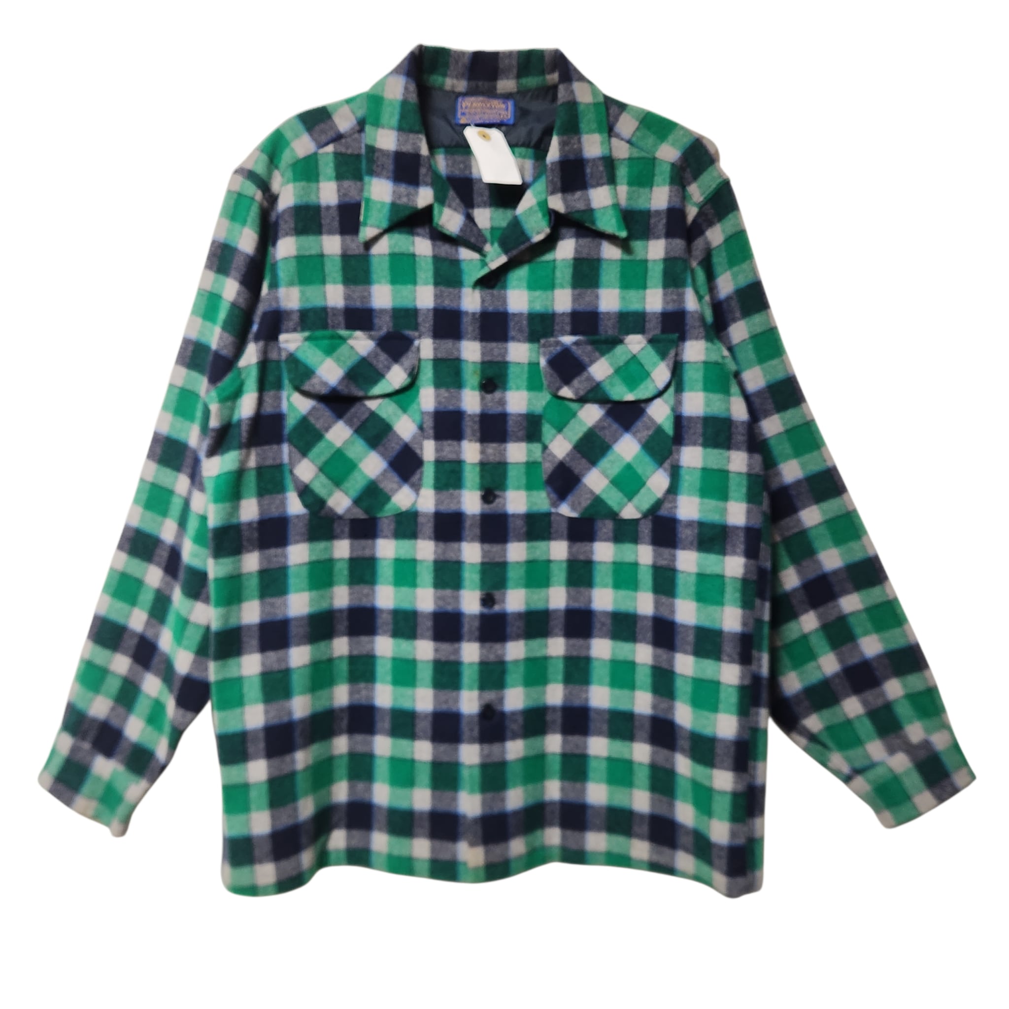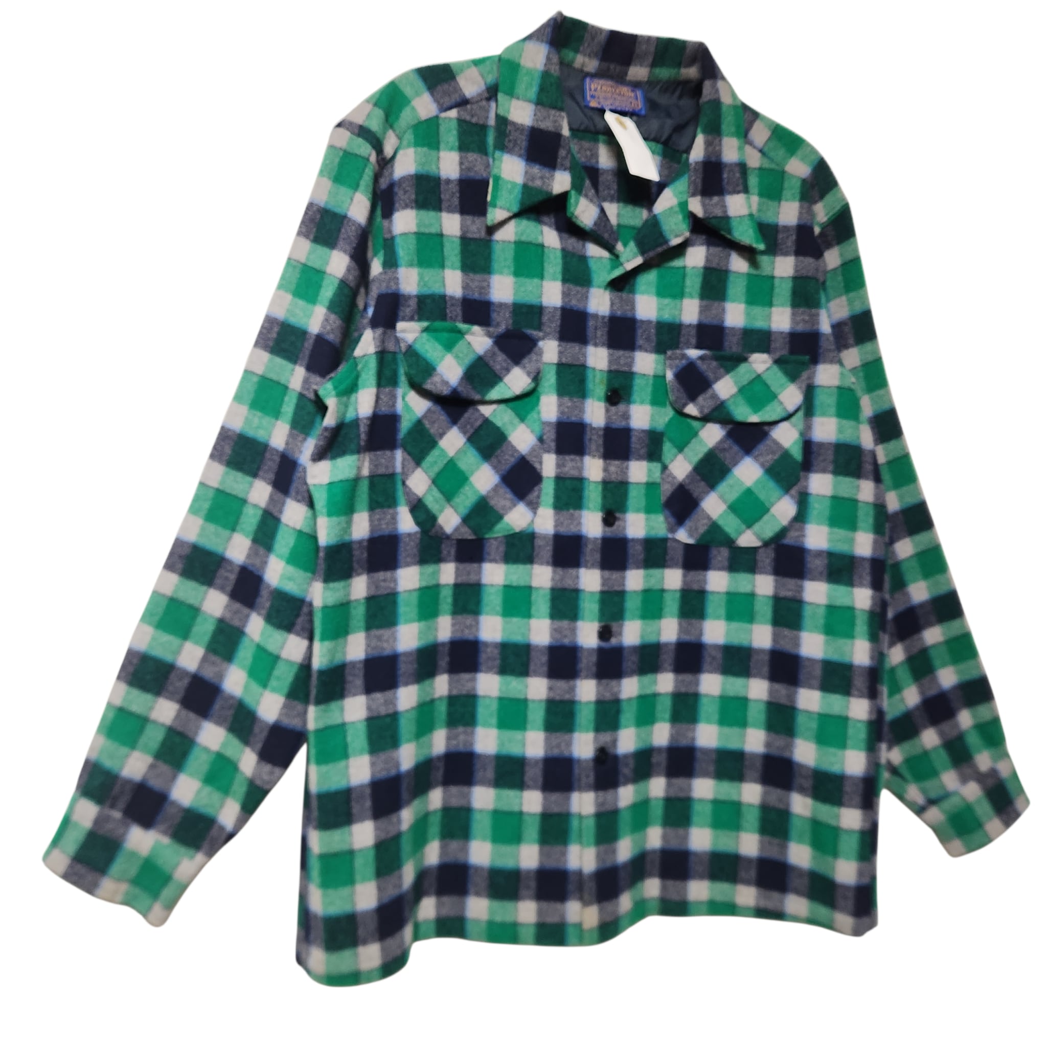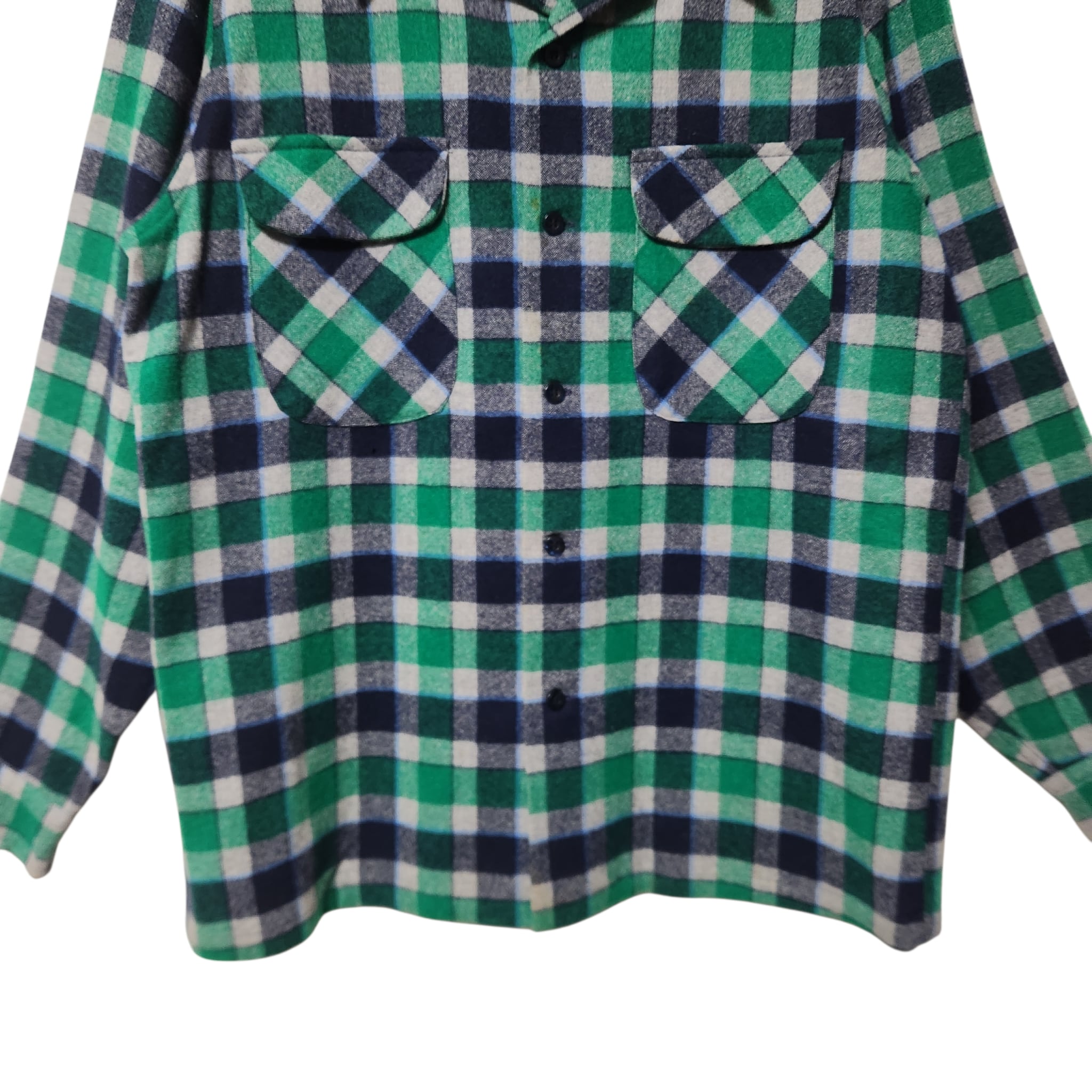 爽配色★ 70s PENDLETON ボードシャツ ウール チェック グリーン系 USA製 長袖シャツ ペンドルトン L